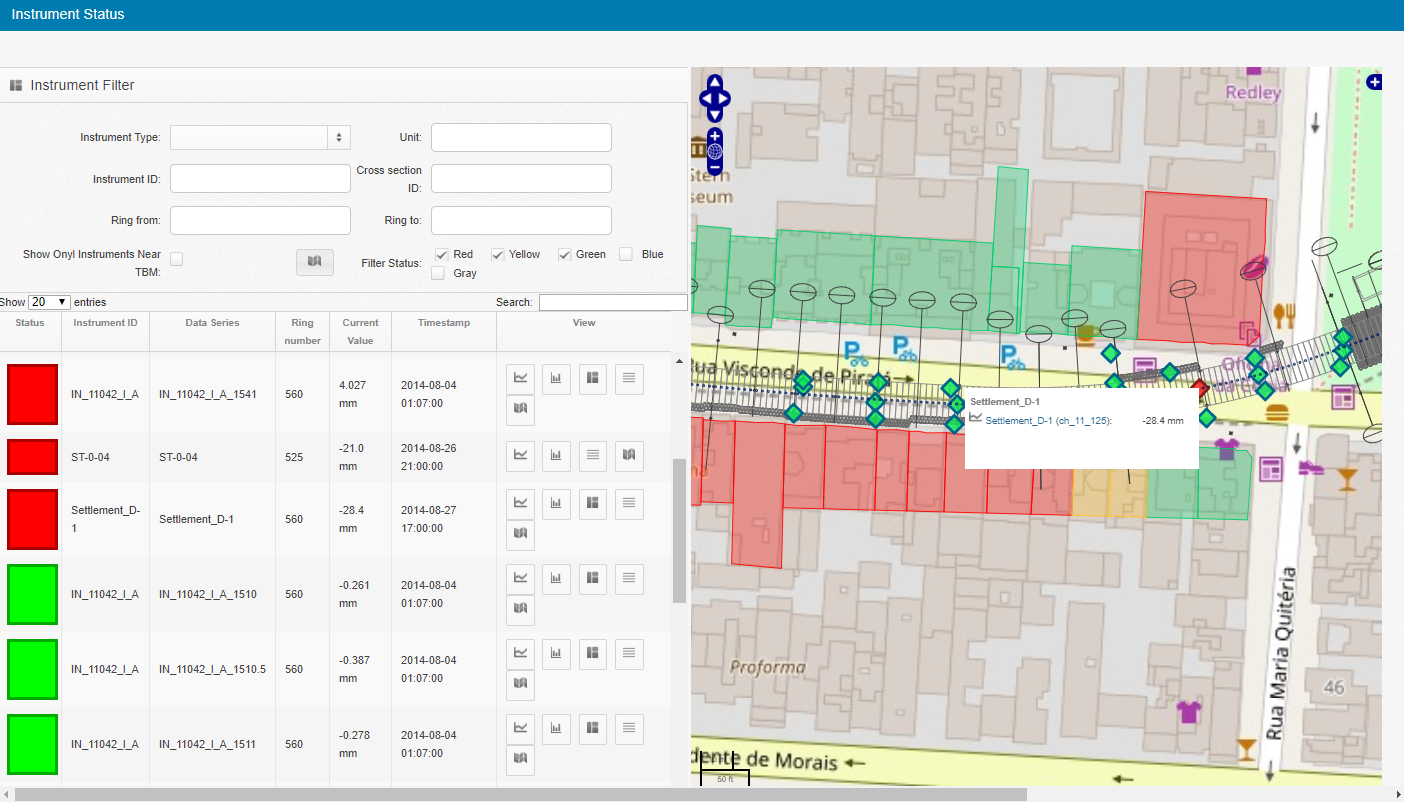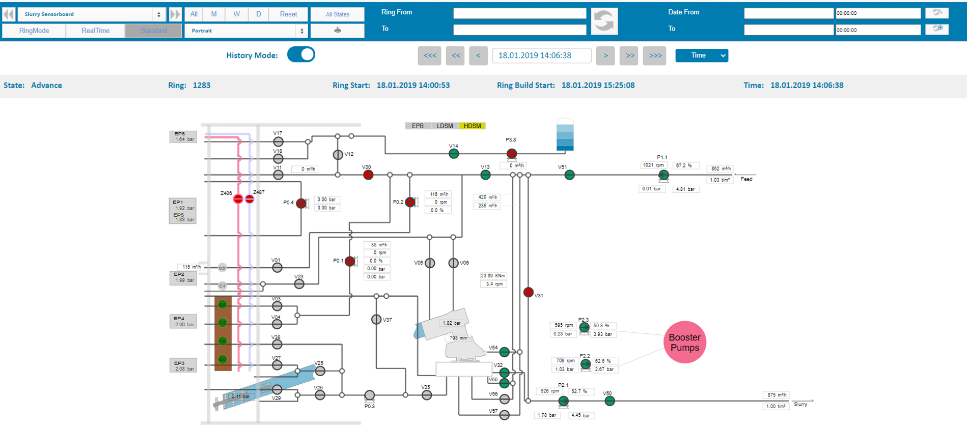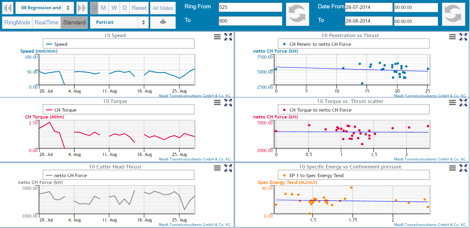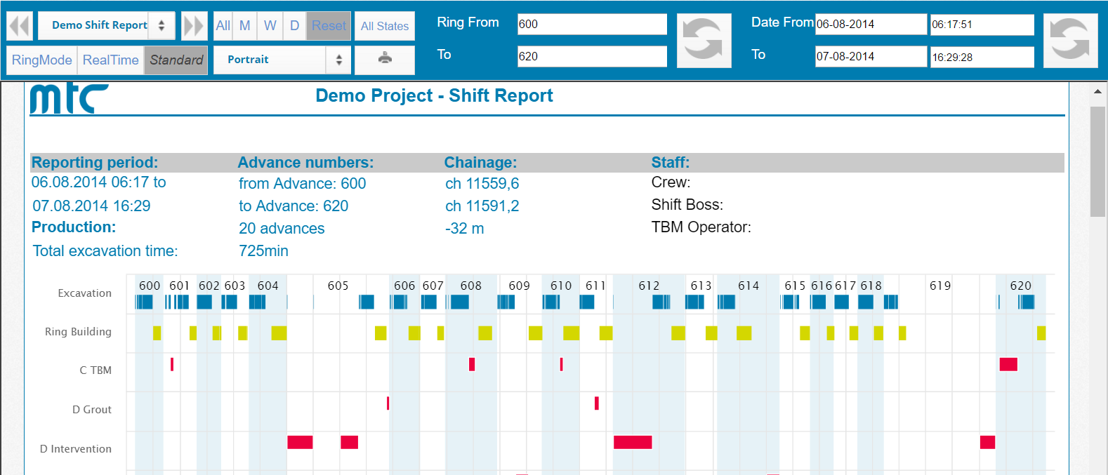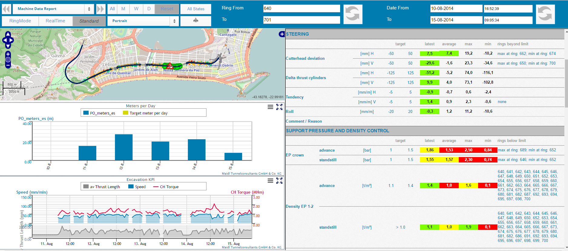 The tunnel model consists of the individual segmental linings representing the tunnel tubes. Each tunnel tube contains a number of rings consisting of a defined number of individual segments. Each digital segment has assigned various information from the start like its segment type or its ring number. During the tunnel advance, the information of the segments increases steadily by the incorporation of data from segment tracking and quality management, document linkage or highlighting of the TBM data history (e.g. thrust forces). An easily navigable visualization of the segmented lining allows a quick data identification, problem evaluation and overview of the projects progress.