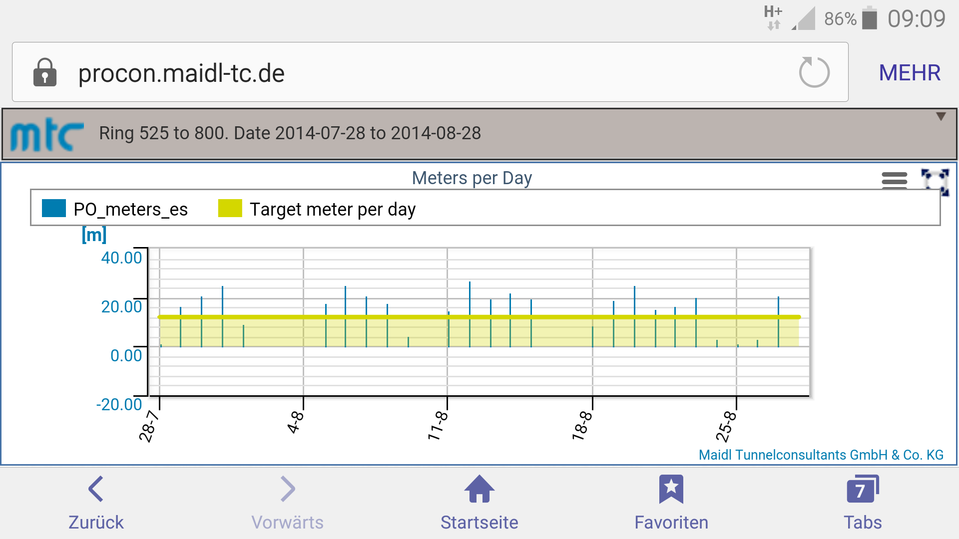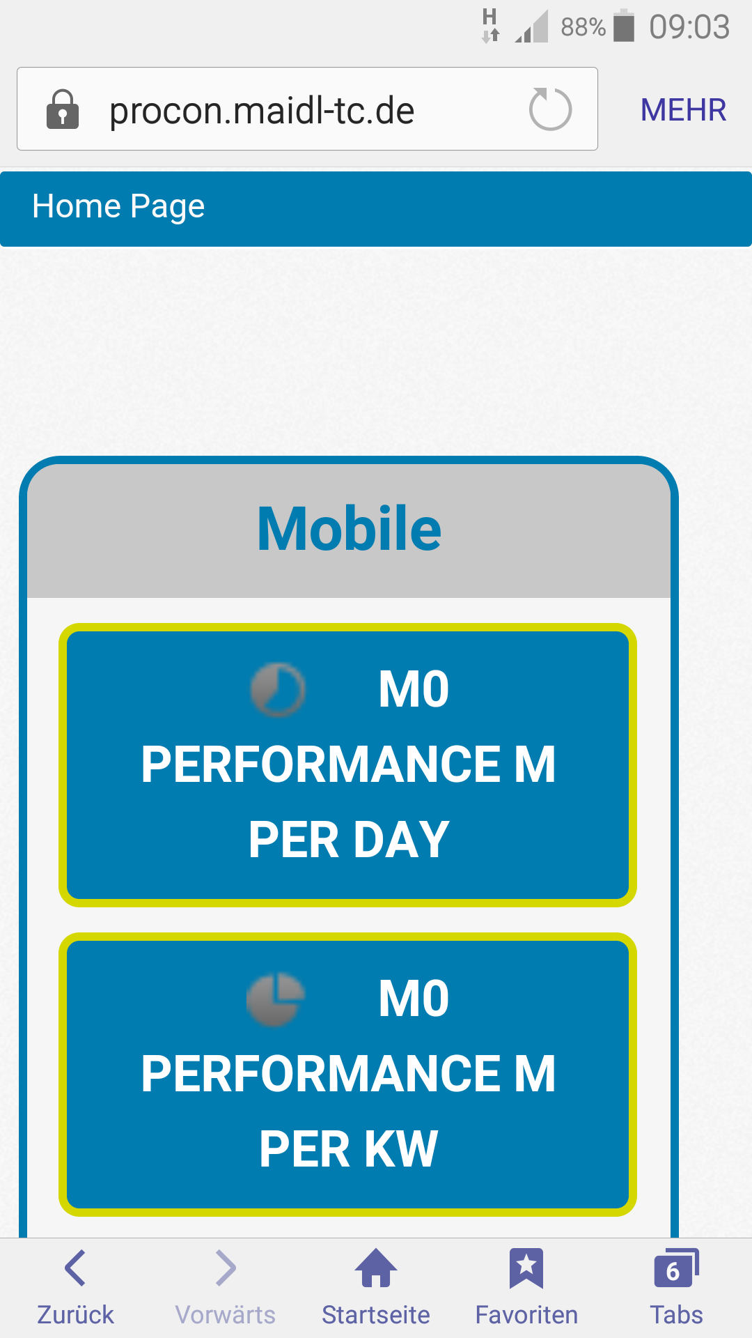 Often you are on the move and you have no possibilities to monitor the current status of the project at a computer. Therefore, PROCON II offers a mobile version which can access customized dashboards via smartphone or tablet to monitor different aspects of the project to quickly react in case of problems. You can easily reach the mobile version using the browser of your device and the known URL.